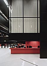 Koolhaasův program měl nalákat nový druh čtenářů. Jeho stavba tu je především pro lidi, kteří se nesmí v žádném případě nudit. V případě universitní knihovny je úkol jiný - nerozptylovat. Téměř všechny vertikální prvky jsou černé. Jedinými barevnými (rušivými) akcenty jsou pouze červené informační centrum a výpůjční pulty. Potisk skel ubírá na propustnosti světla a navozuje pocity tajemna až útlaku. Arets: