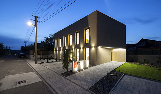 The building is located in the center of the village of Nitrianske Sučany in the Prievidza district of western Slovakia. The construction arose on the site of the former municipal office and fire station and is two stories high, complementing the urban structure with its placement in the central part of the village. Despite its administrative function, its placement and scale fit into the existing structure of residential houses. The pentagonal floor plan shape with the main facade oriented towards the street offers a pleasant working environment for the staff and management of the company.
