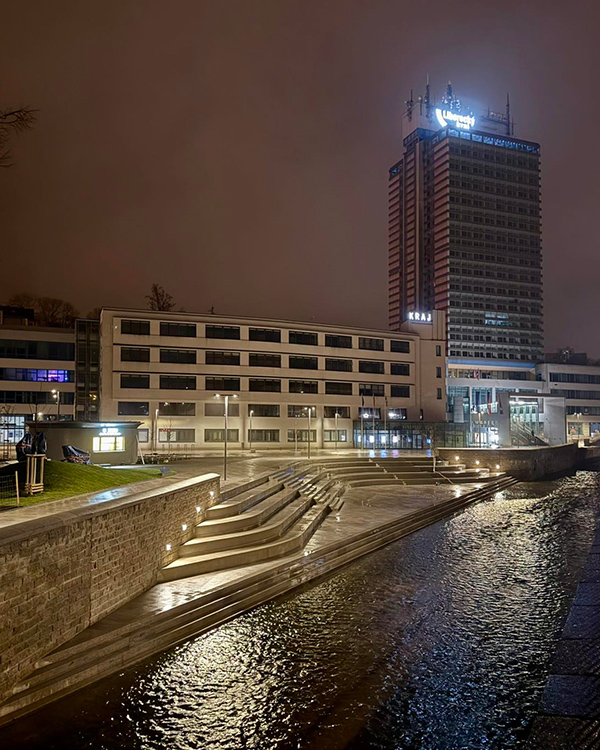 In addition to the stay staircase, there is also a new bridge over the river, a sculpture by Magdalena Jetelová in the form of four giant legs, a fountain, and a children's playground. The entrance to the regional office building has been completely renovated, and the adjacent park has also been revitalized. From the end of November, a kiosk with refreshments will also be operational there.