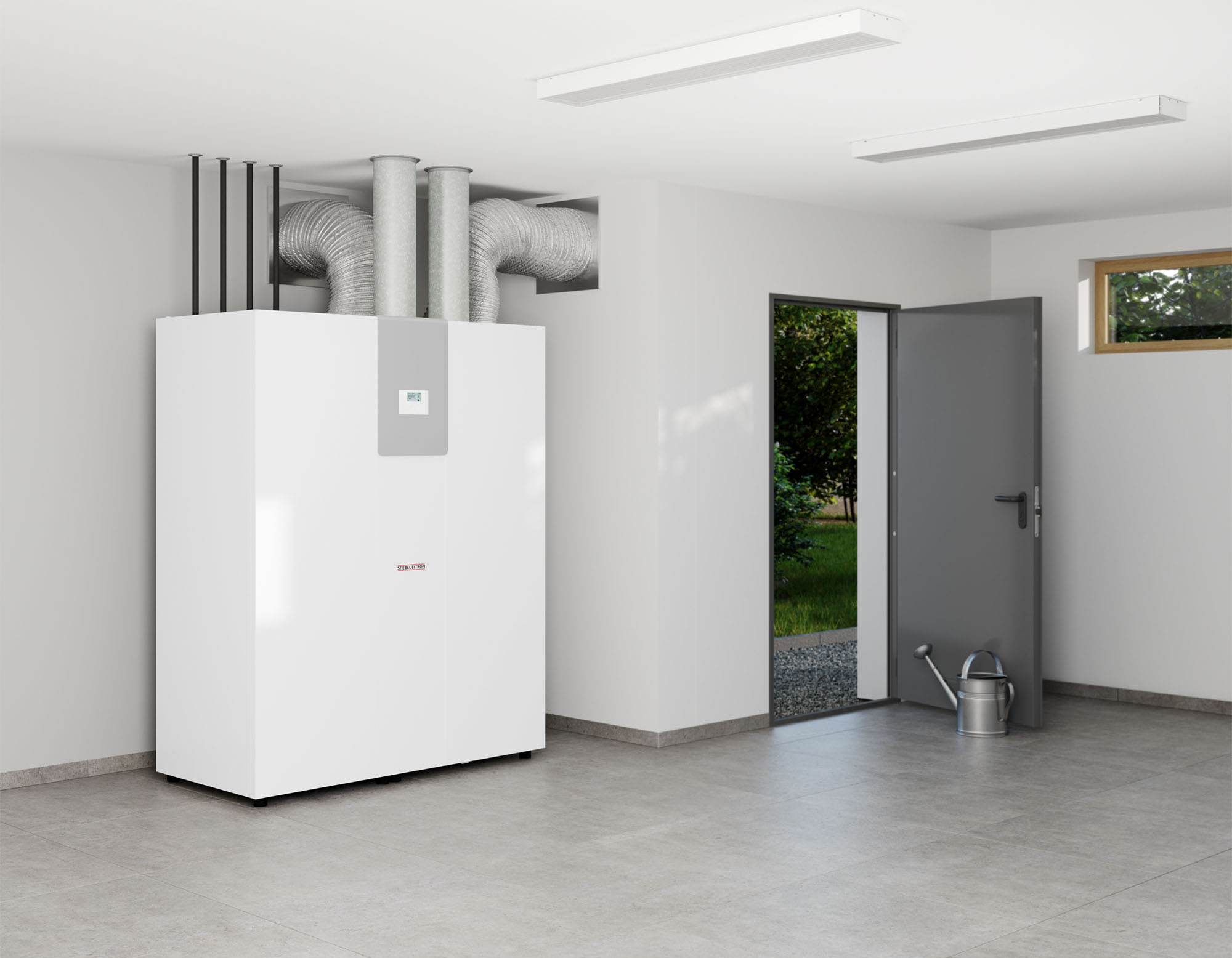 A patented solution by Stiebel Eltron involves a separate branch of the refrigerant circuit of the heat pump, which is brought into the stream of fresh air drawn into the ventilation unit in the form of a small heat exchanger. Preheating is thus ensured by electric energy multiplied by the heating factor of the heat pump. The energy supplied in the air is not expelled from the device directly outdoors. Upon returning from the house and the heat recovery, the ventilated air at a temperature above 0 °C still has the potential to raise the average temperature at the evaporator of the heat pump. This air is sent precisely there and helps improve the performance and efficiency parameters of the heat source. The separate refrigerant branch can also be utilized in the summer for pre-cooling the air by up to 6°C.