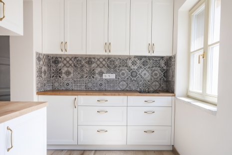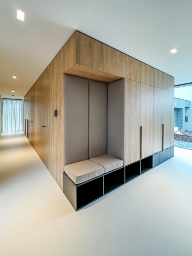 Fara byla zrekonstruována nejen zvenčí, ale také včetně kompletních vnitřních prostor. Ty byly nově upraveny dispozičně a vybaveny nábytkem na míru, který vznikl v naší vlastní truhlárně. Díky tomu se podařilo propojit historický charakter objektu s moderní funkčností a dlouhou životností interiérového vybavení.