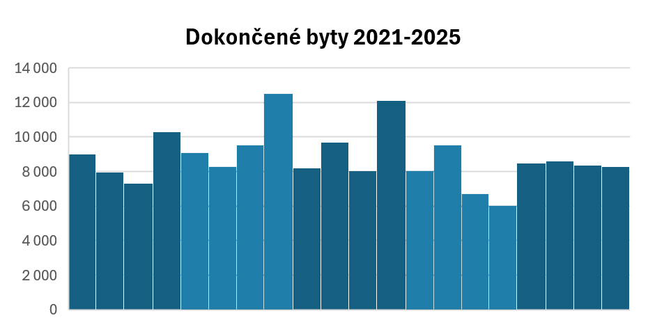 V Česku by se do pěti let mělo podle hospodářské strategie vlády ANO, SPD a a Motoristů stavět 50.000 nových bytů ročně. To by bylo o zhruba 20.000 bytů více než nyní. Z celkového počtu by zhruba 10.000 nových bytů mělo být obecních, družstevních či v režimu tzv. dostupného bydlení. Podle dat Českého statistického úřadu se v Česku v roce 2025 dostavělo 33.742 bytů, tedy meziročně o zhruba 3500 bytů více.