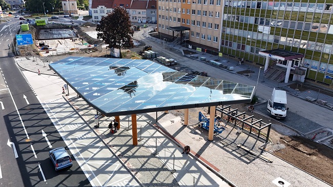 "Terminál je zastřešený a kromě samotných nástupišť pro autobusy zahrnuje také širší úpravu veřejného prostranství. Důraz byl kladen na vytvoření dostatečné kapacity parkovacích míst, kvalitní městský mobiliář, výsadbu zeleně i prostor pro odpočinek. Nechybí zde dokonce ani dětské hřiště," uvedl Rozehnal.