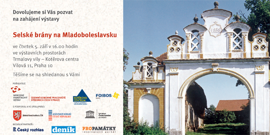 Ve čtvrtek 5. 9. 2013 v 16.00 hod. proběhne ve výstavních prostorách Trmalovy vily – Kotěrova centra (Vilová 11, Praha 10) vernisáž reprízované výstavy „Selské brány na Mladoboleslavsku“. Autorkou výstavy, kterou bylo možné až doposud shlédnout v Muzeu Lidových staveb v Kouřimi, je Mgr. Jana Berková, vedoucí oddělení specialistů Národního památkového ústavu – územního odborného pracoviště středních Čech (dále jen NPÚ ÚOP středních Čech) a odbornice na lidovou architekturu. Uvedená výstava, která bude veřejnosti přístupná v průběhu celého měsíce září, je jednou z řady aktivit, jíž se NPÚ zapojuje do celoročního programu akcí spojených s vyhlášením roku 2013 jako Roku lidové architektury Čech, Moravy a Slezska.