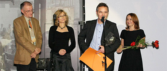 Odovzdávanie ceny (na fotografii z odovzdávania je laureát Ceny ARCH 2008 architekt Ján Studený a zľava M. Dulla, člen odbornej poroty, D. Lalíková, šéfredaktorka Vydavateľstva Eurostav a H. Moravčíková, šéfredaktorka časopisu ARCH) |