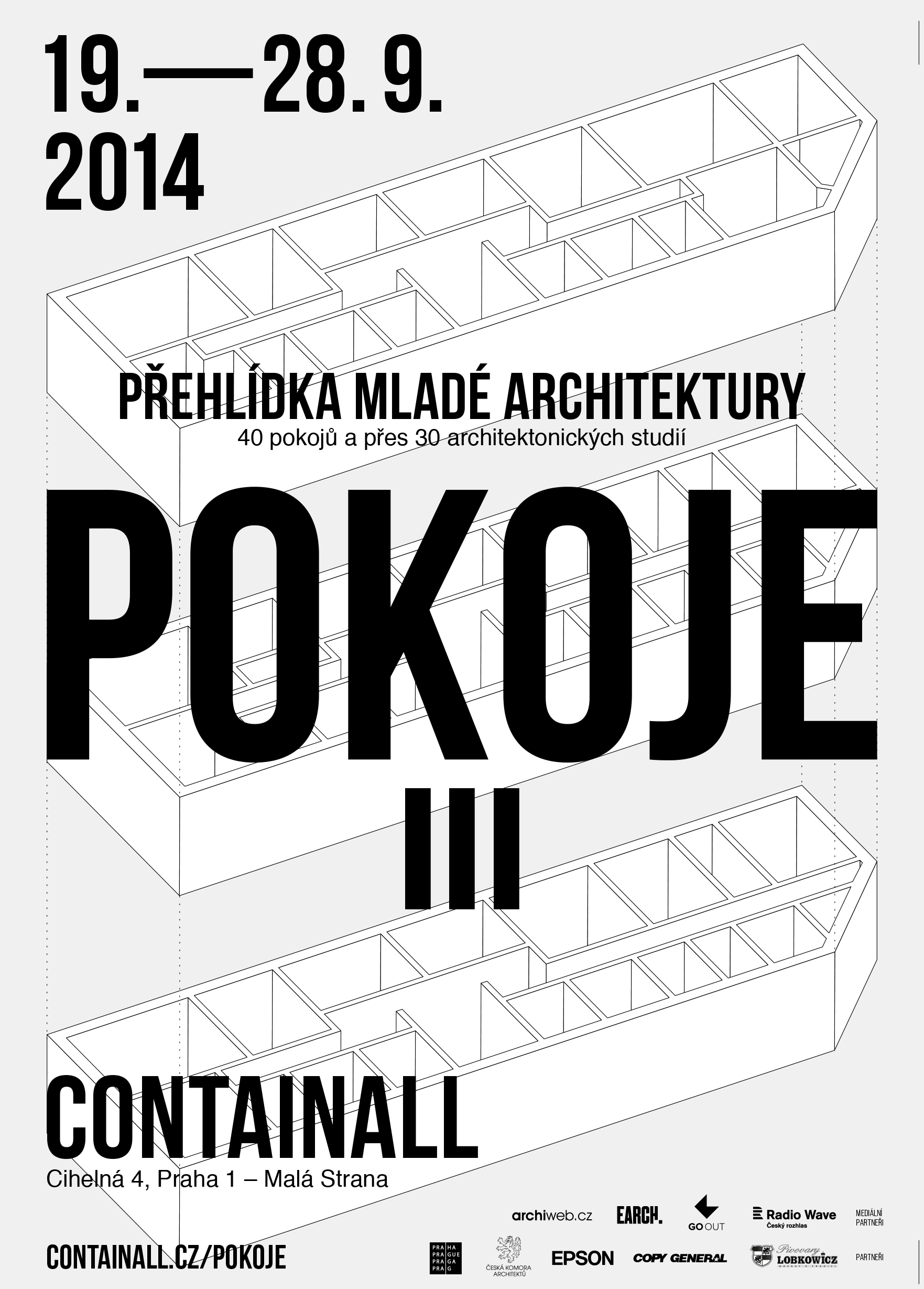 POKOJE III: přehlídka mladé architektury Adresa: Cihelná 4, Praha 1, Malá Strana Datum: 19. – 28. 9. 2014 Vstupné: 80,-/ 60,- pro studenty