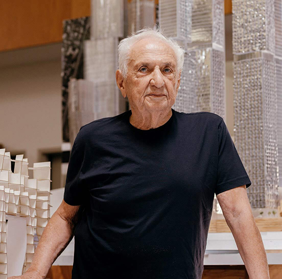 "Snažím se projektovat stavby jako odpověď na lidské pocity," vysvětloval v jednom z rozhovorů světové architektury. Jako inspiraci zmiňoval zdroje natolik rozdílné, jako jsou indické sochy boha Šivy nebo nadívaný kapr jeho babičky před kuchyňskou úpravou. K jeho nejznámějším dílům patří koncertní hala Walta Disneyho v Los Angeles, která se tyčí v centru města jako obrovitý železný květ, vystavuje na odiv obnažené kovové nosníky, šrouby a trubky, kamenné schody i světlé dřevo. Po svém otevření v říjnu 2003 se stala symbolem města, i když její vzhled nejeden kritik přirovnával ke kornoutu s hranolky. Obyvatelé Los Angeles si ale stavbu zamilovali, akustiku budovy si zase cení umělci a diváci.